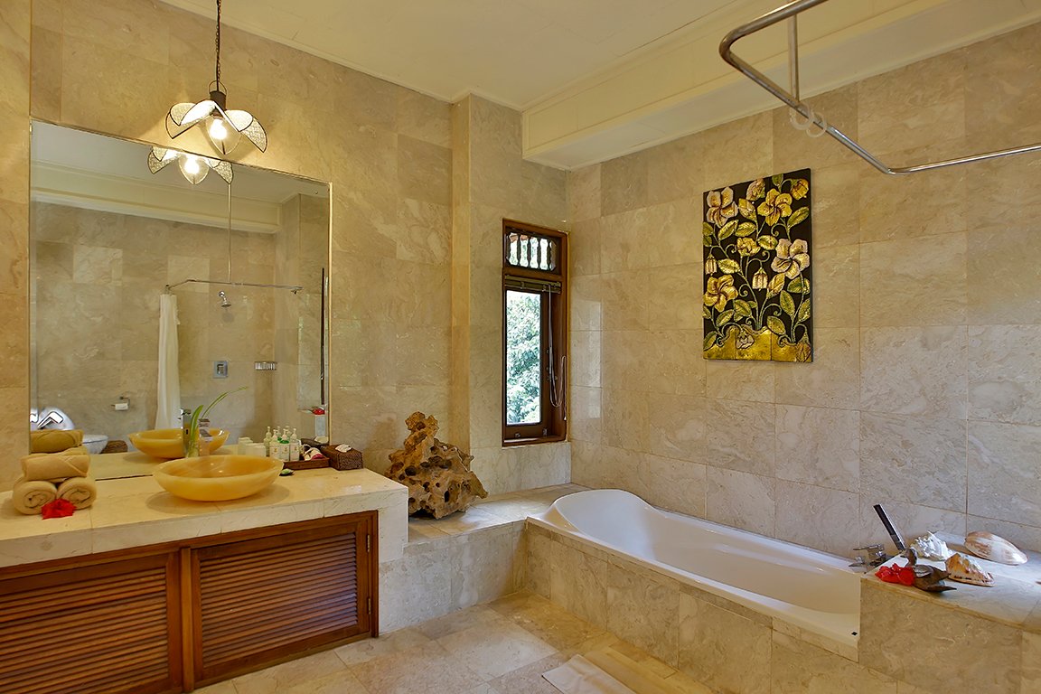 Panorama ricefield-view, big terrace or balcony, 2 double-beds, marble bathroom with bathtub and separate hot shower, AC, telephone, minibar, hair dryer, safety box, electric kettle.